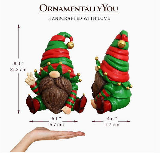 Cheerful Elf Gnome Festive Figurine 8" Garden Statue