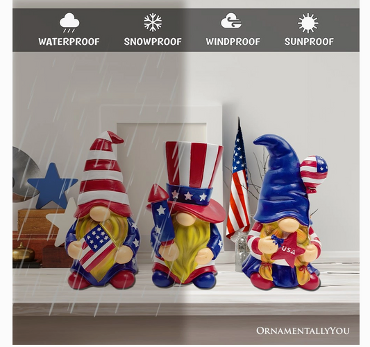 Patriotic Gnome Trio Figurines, Set of Three Garden Statue