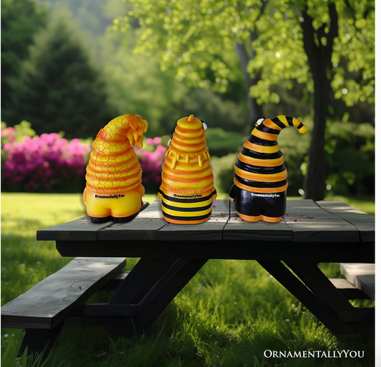 Buzzy Trio Set of Three Bumble Bee Gnome Figurines