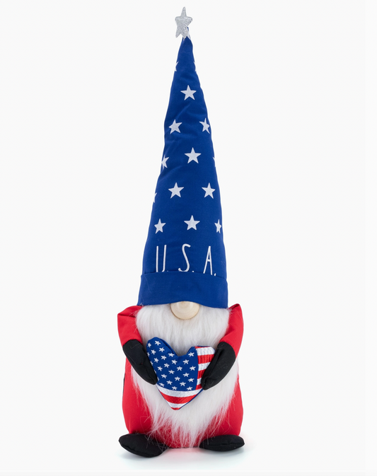Rae Dunn “USA” Patriotic Plush Gnome with USA Flag Heart