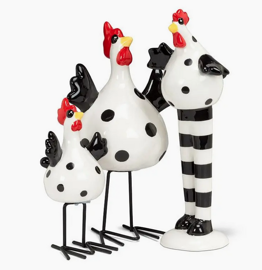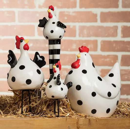These decorative Dotted Chickens combine whimsy with artistic flair, perfect for adding a cheerful and unique accent to your home decor, particularly in kitchens or living spaces where a touch of fun is appreciated.