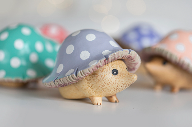 Wide-eyed and kind-hearted, the Toadstool Hedgies are like their hedgehog cousins... but instead have colourful caps where you might expect to find spines. The perfect hiding place for field mice and fairies.