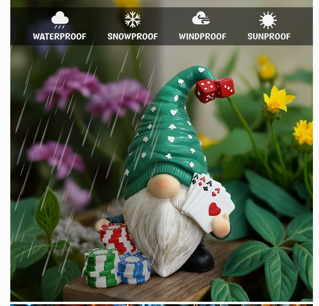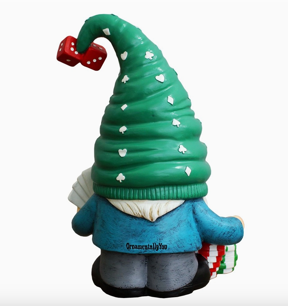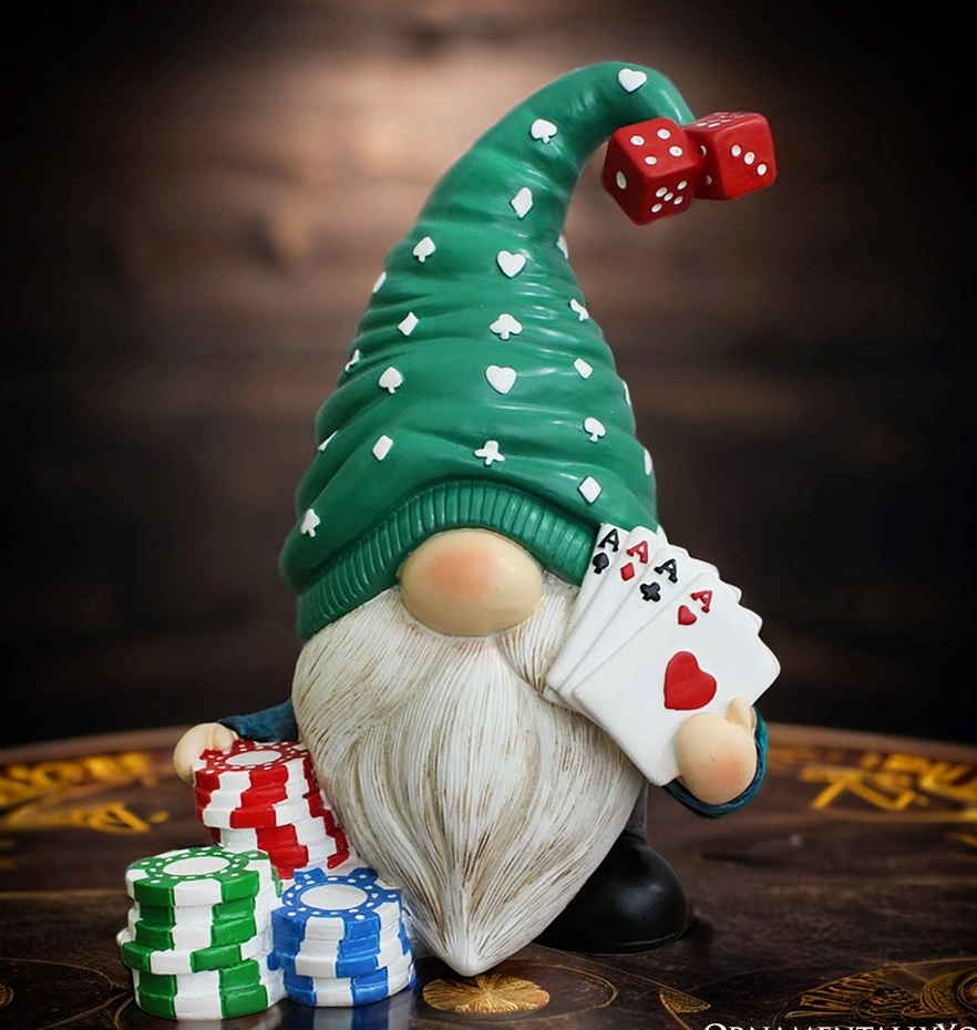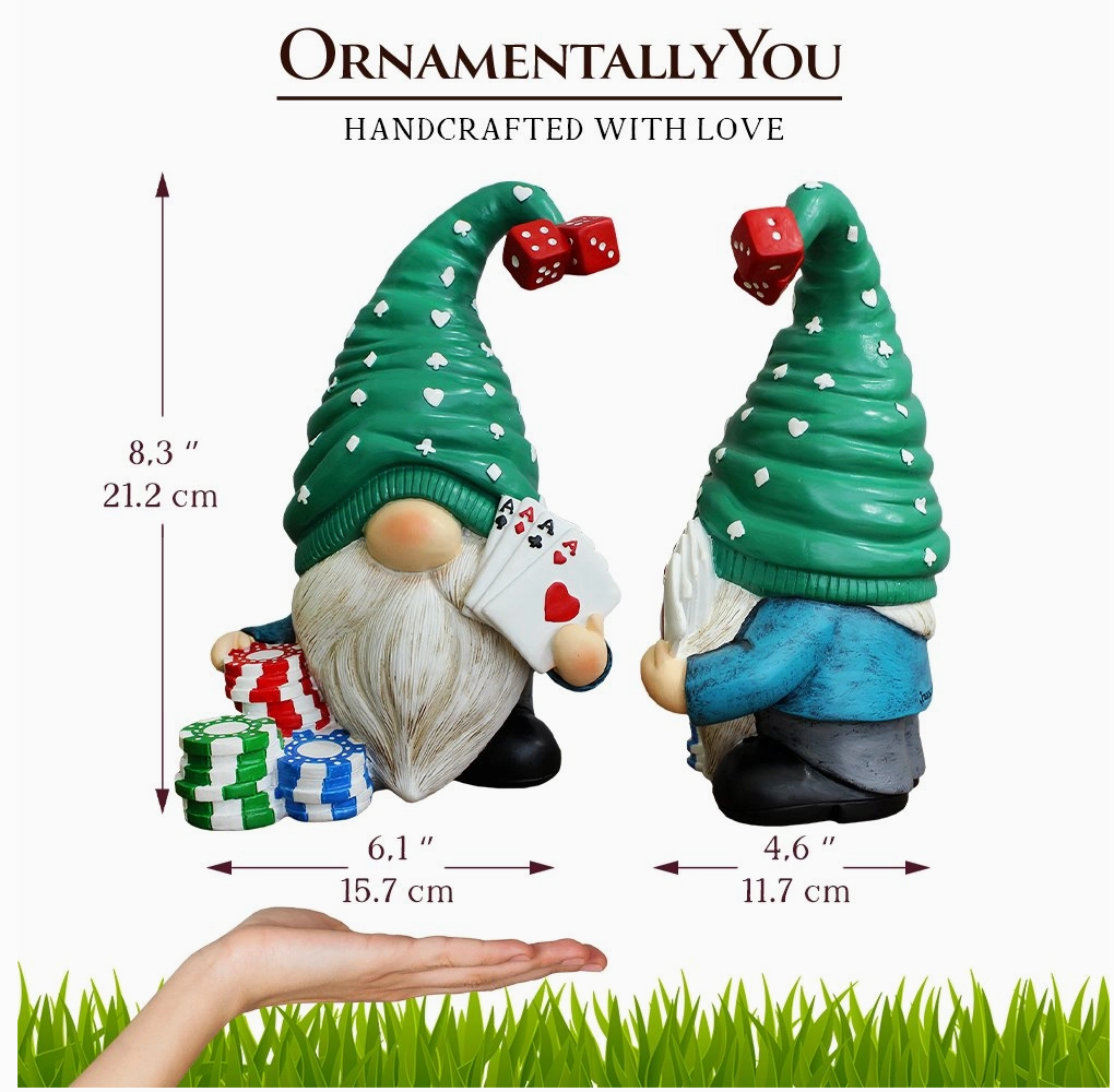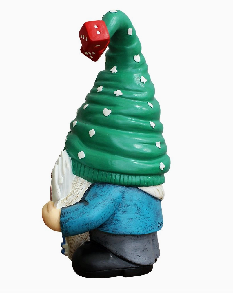 Casino Poker Gnome Figurine, 8" Room Table Decor Statue