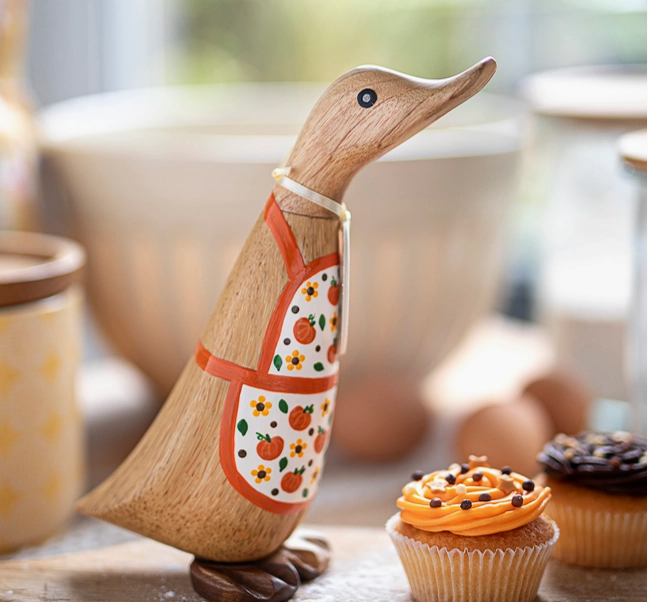 Our sweet-beaked Baker Ducklings have pulled on colorful hand-painted pinnies, and are ready to flutter the butter.