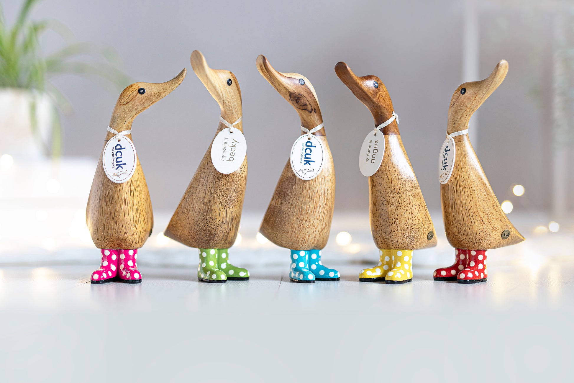 Ready for a spot of rain, our hand-carved ducklings have pulled on their gorgeous hand-painted welly boots for some fun in the puddles.