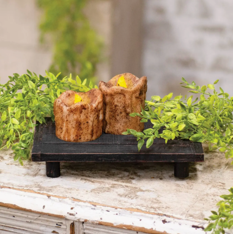Easily feature merchandise and incorporate height into your tabletop displays with these distressed wooden rectangle risers. It's an essential piece to use with rustic, primitive, or farmhouse decor. Made of chunky wood slats with a heavily weathered look, this riser measures 8.75" long by 5.5" wide and stands 1.5" high.