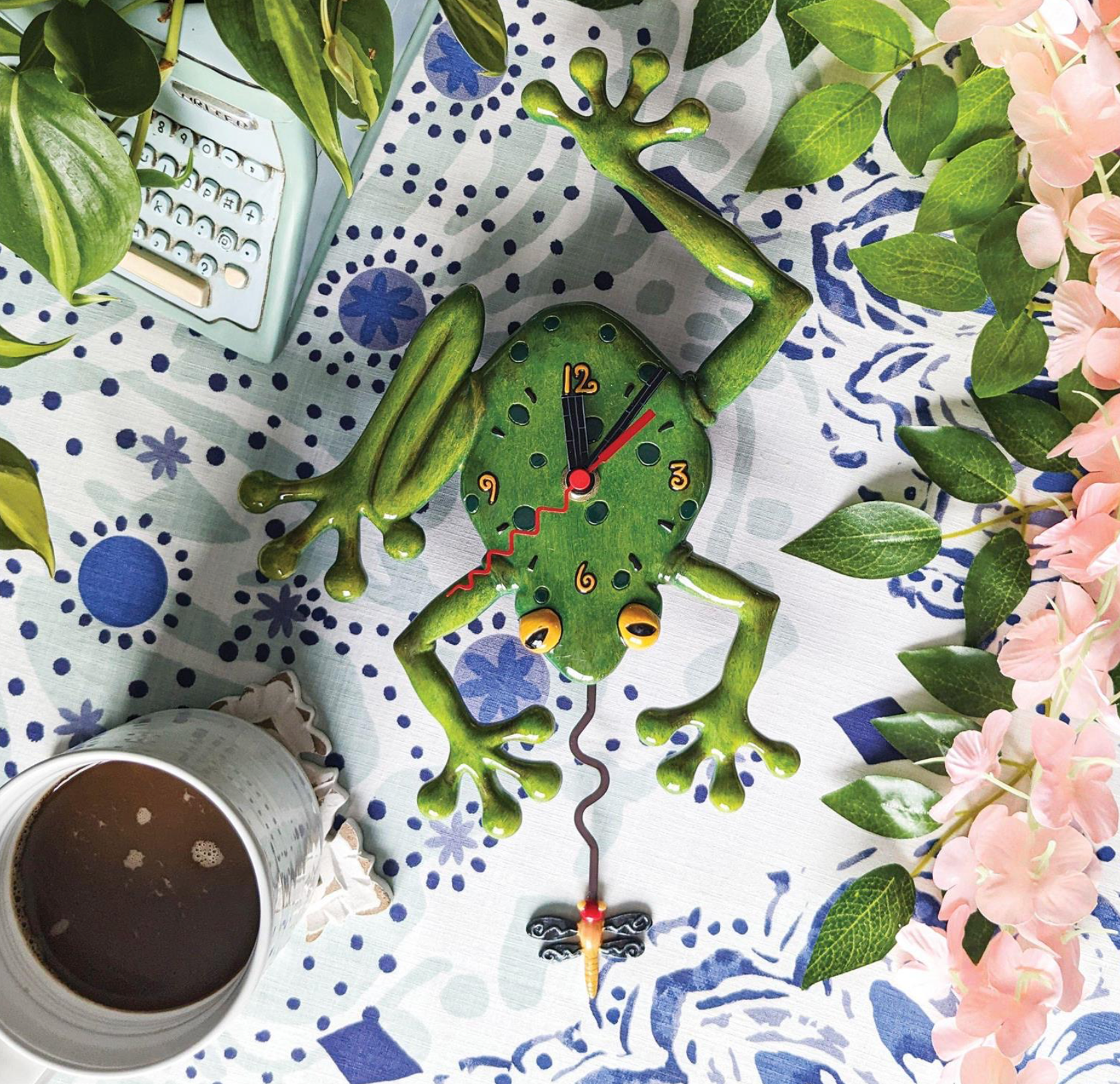 This little froggy clock sure does make us grin! Just like we smile when we come across a frog friend in the garden. Our whimsical pendulum clocks add a unique burst of personality to any room!