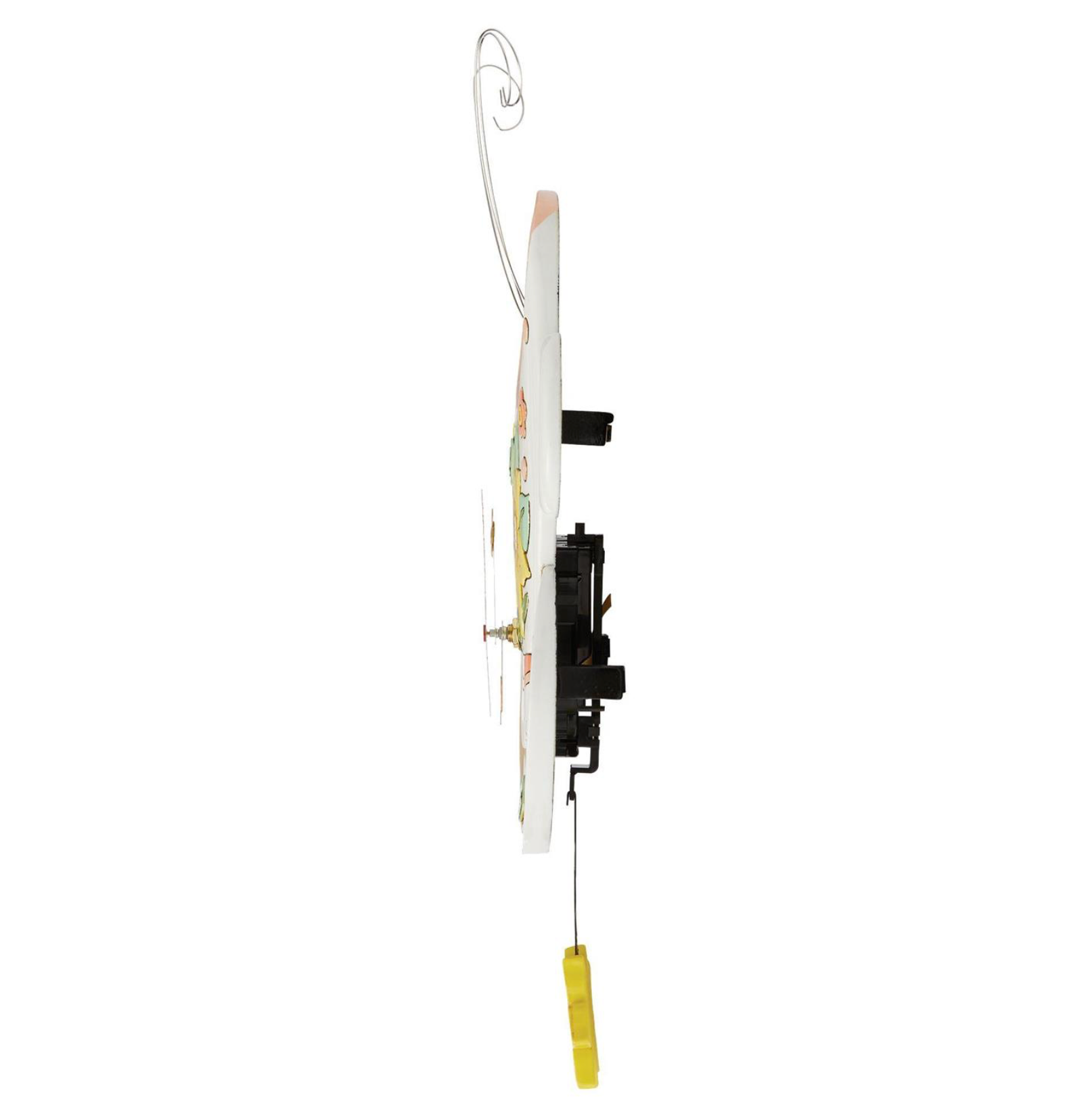 This lovely clock is in the shape of a gorgeous floral teacup and saucer. Wire swirls mimic steam coming off the cuppa, while bright yellow flowers enchant from the cup's bowl. A swinging bloom acts as a pendulum while flower clock hands tick.