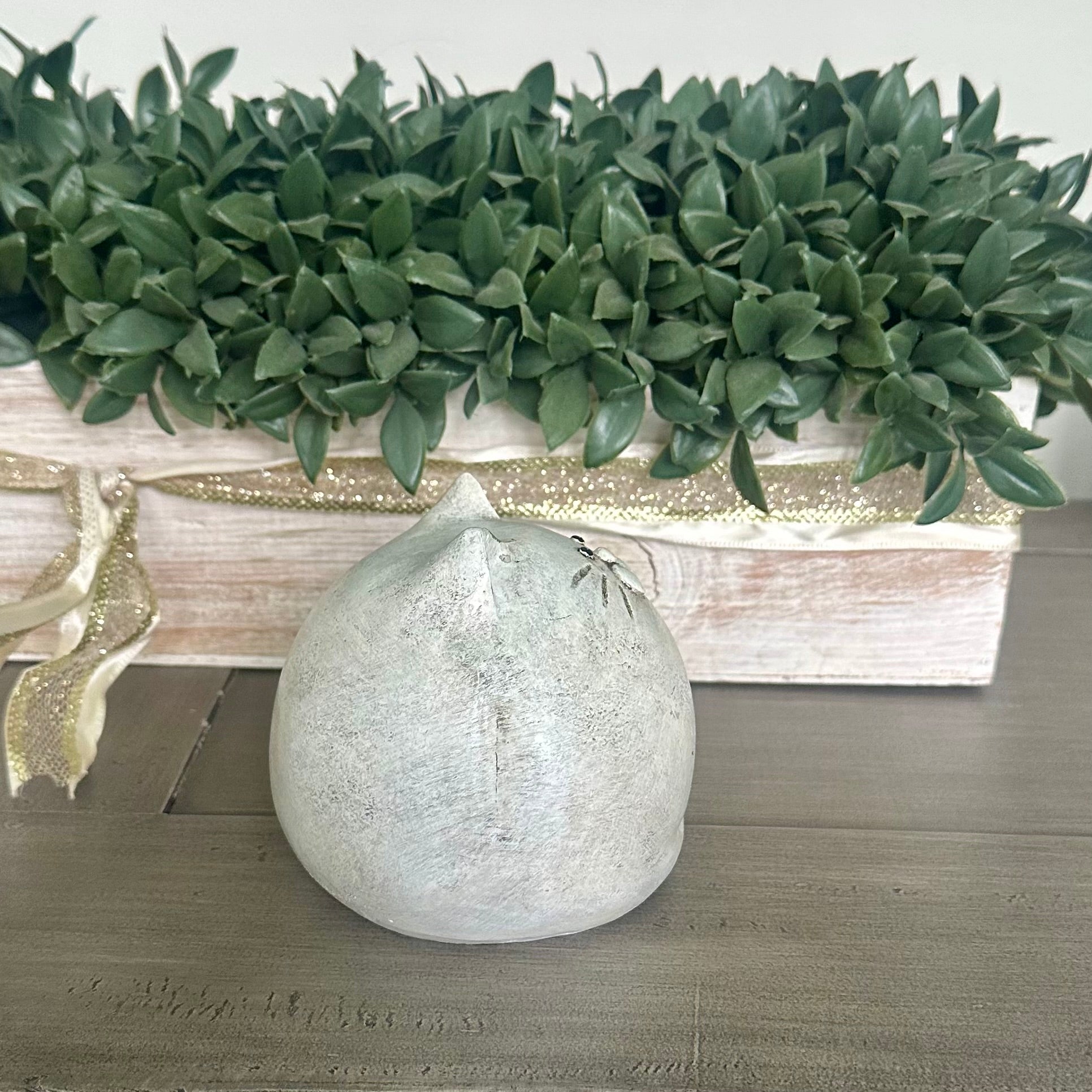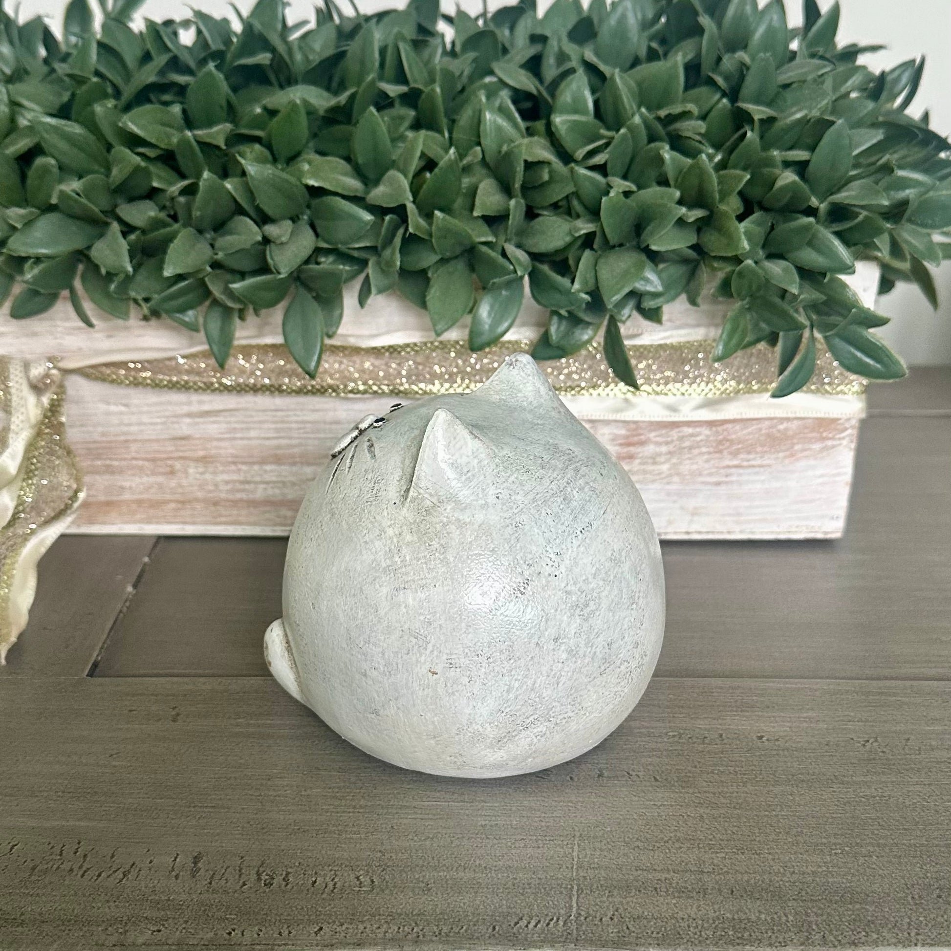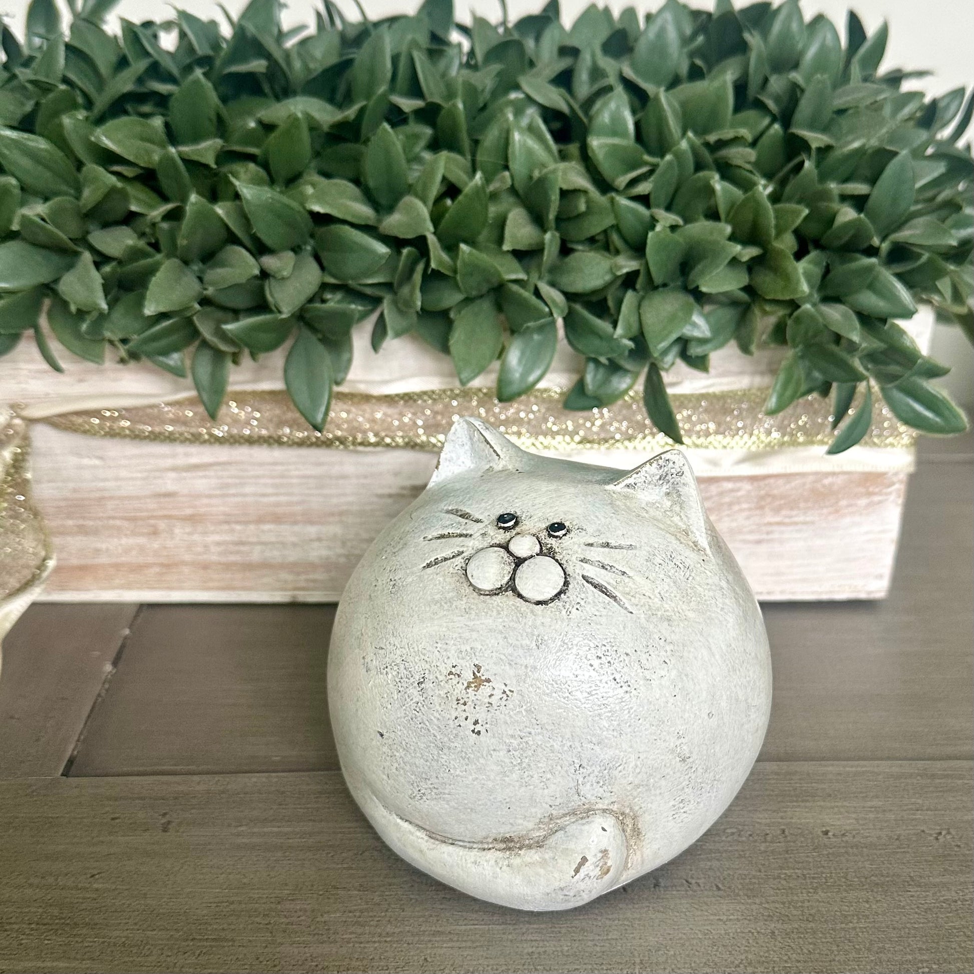 This cute and cuddly ball cat is full of fun and personality. Crafted from resin with for a vintage, weathered look, this well-rounded feline makes a charming decorative accent anywhere around the home or garden.